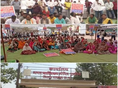 मंदिर हसौद नगर पालिका के बाहर प्रदर्शन, गेट पर ताला लगाकर जताया विरोध