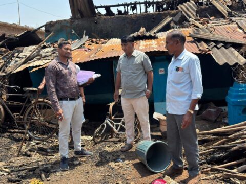 मुंदगांव में गैस सिलेंडर फटने से भीषण आगजनी:पीड़ित परिवार के बीच पहुंचे जिला पंचायत सदस्य महेंद्र यादव