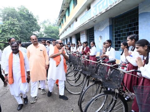 मुख्यमंत्री की पहल पर विधायक पुरंदर मिश्रा ने छात्राओं को साइकिल दी और विद्यालय विकास हेतु 10 लाख की सौगात