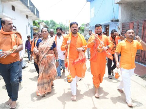 सोमनाथ मंदिर में विधायक अनुज व कांवड़ियों ने किया जलाभिषेक