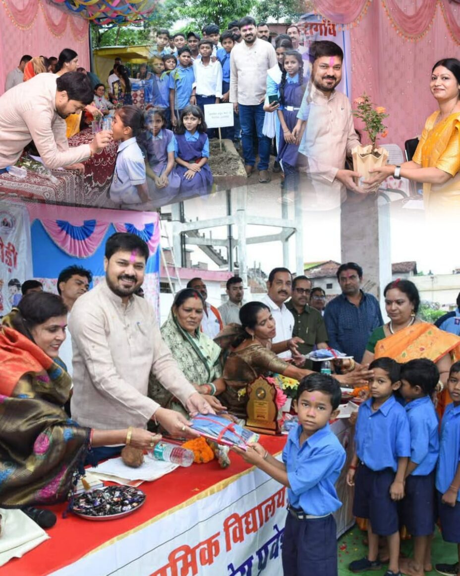 आज के इस शाला प्रवेश उत्सव में देश और प्रदेश का उज्ज्वल भविष्य गढ़ने वाले प्यारे बच्चों का तिलक लगाकर और मिठाई खिलाकर विधायक श्री अनुज शर्मा ने स्वागत किया और छात्र-छात्राओं को शिक्षा सामग्री वितरित कर शुभकामनाएं दी व बच्चों के साथ मिल कर वृक्षारोपण भी किया गया और विधायक श्री शर्मा ने एक छात्र को अपने प्रतिनिधि के रूप में उस वृक्ष कि देखभाल कि ज़िम्मेदारी दी|