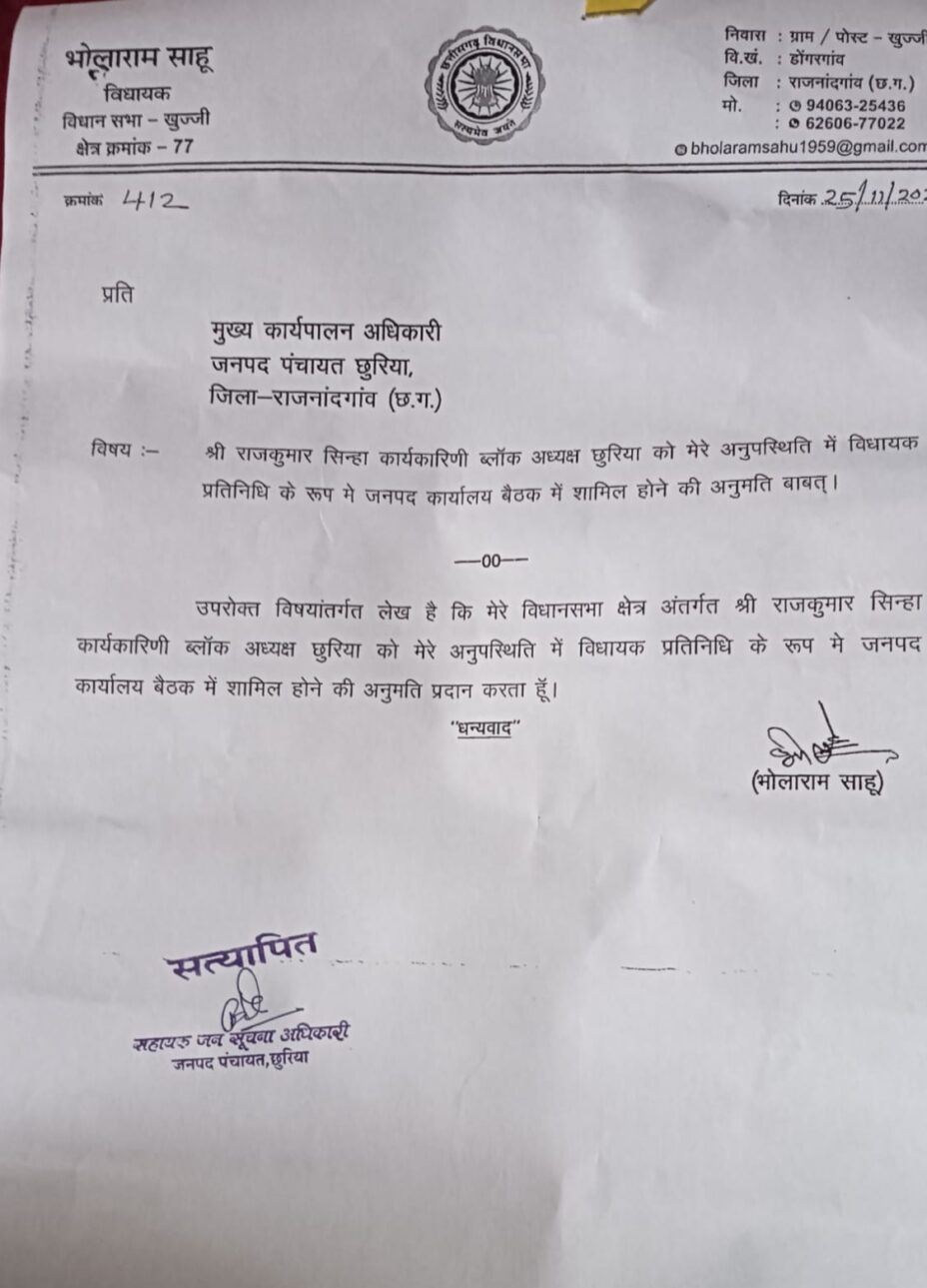 एक व्यक्ति को दो पद, ब्लाक काग्रेंस कमेटी कार्यकारी अध्यक्ष व जनपद पंचायत छुरिया का विधायक प्रतिनीधी