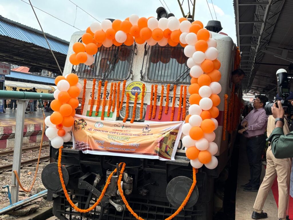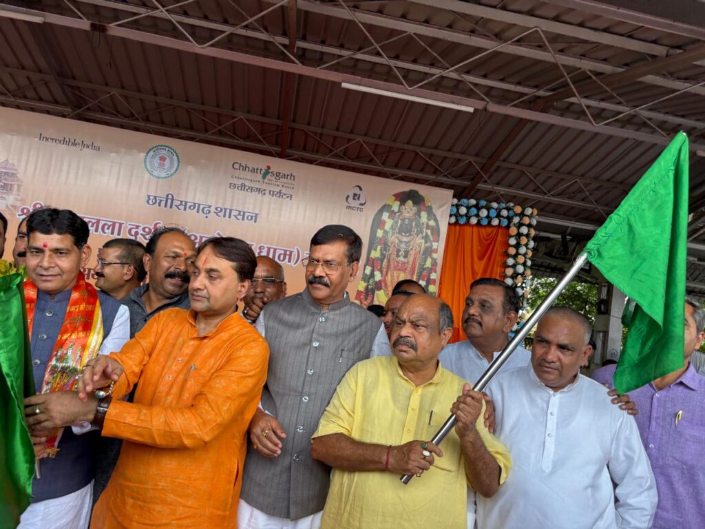 रायपुर(Raipur)15 जुलाई 2025: छत्तीसगढ़ शासन की महत्वाकांक्षी धार्मिक पर्यटन योजना “रामलला दर्शन योजना” के अंतर्गत 15 जुलाई 2025 को रायपुर रेलवे स्टेशन से पहली विशेष ट्रेन को अयोध्या धाम के लिए रवाना किया गया।इस विशेष अवसर पर उत्तर विधानसभा क्षेत्र के विधायक पुरंदर मिश्रा एवं छत्तीसगढ़ पर्यटन मंडल के अध्यक्ष नीलू शर्मा ने संयुक्त रूप से हरी झंडी दिखाकर ट्रेन को रवाना किया। इस योजना की पहल मुख्यमंत्री विष्णुदेव साय के मार्गदर्शन में की गई है, जिसका उद्देश्य राज्य के श्रद्धालुओं को श्रीराम जन्मभूमि अयोध्या के दर्शन के लिए नि:शुल्क, सुरक्षित और सुलभ यात्रा उपलब्ध कराना है।