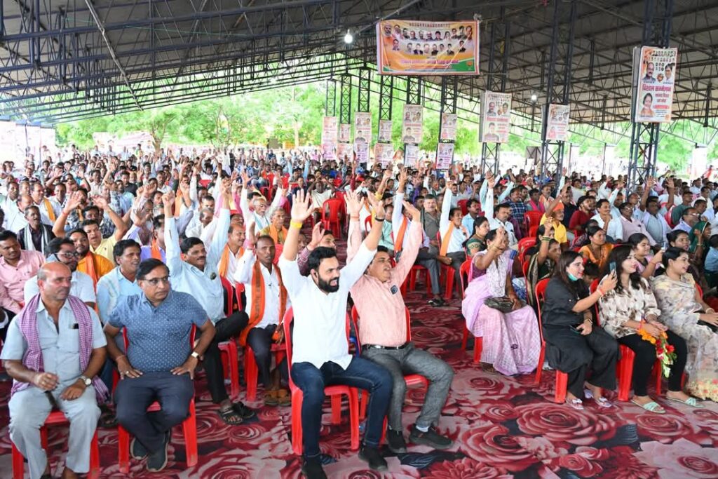 साव ने मोदी सरकार के एक देश, एक चुनाव पर भी विचार साझा किया। लोगों ने एक स्वर में देश में एक साथ चुनाव कराने की बात कही। वहीं एक पेड़ मां के नाम 2.0 अभियान के तहत पौधारोपण करने संकल्पित किया।सम्मेलन के दौरान आरक्षण, शिक्षा, स्वरोजगार, सामाजिक न्याय और राजनीतिक सहभागिता जैसे महत्वपूर्ण विषयों पर विस्तृत चर्चा हुई। पार्टी की योजनाओं को ग्राम स्तर तक पहुँचाने हेतु विशेष कार्ययोजना की घोषणा की गई। साथ ही युवाओं को राजनीति में सक्रिय भागीदारी हेतु प्रेरित किया गया।इस ऐतिहासिक सम्मेलन में निम्न विशिष्टजन एवं