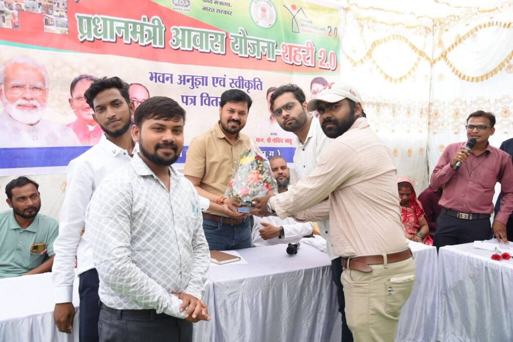 रायपुर(Raipur)07-08-25: धरसींवा विधानसभा के नगर पंचायत कूंरा में प्रधानमंत्री आवास योजना शहरी के तहत क्षेत्र के लाभान्वित हितग्राहियों को भवन अनुज्ञा एवं स्वीकृति पत्र वितरण कार्यक्रम मे धरसींवा विधायक अनुज शर्मा शामिल होकर हितग्राहियो को प्रमाण पत्र वितरित कर उनको बधाई व शुभकामनाएं दिया| इस अवसर पर विधायक शर्मा ने कहा कि आज बड़े ही खुशी का दिन हैं कि आज गरीब परिवारो का सपना पूरा होने जा रहा हैं प्रधानमंत्री आवास योजना के तहत आवास मिलने वाले ग्रामीण क्षेत्रों में लोगों के जीवन स्तर को सुधारने में महत्वपूर्ण भूमिका निभाएगी।