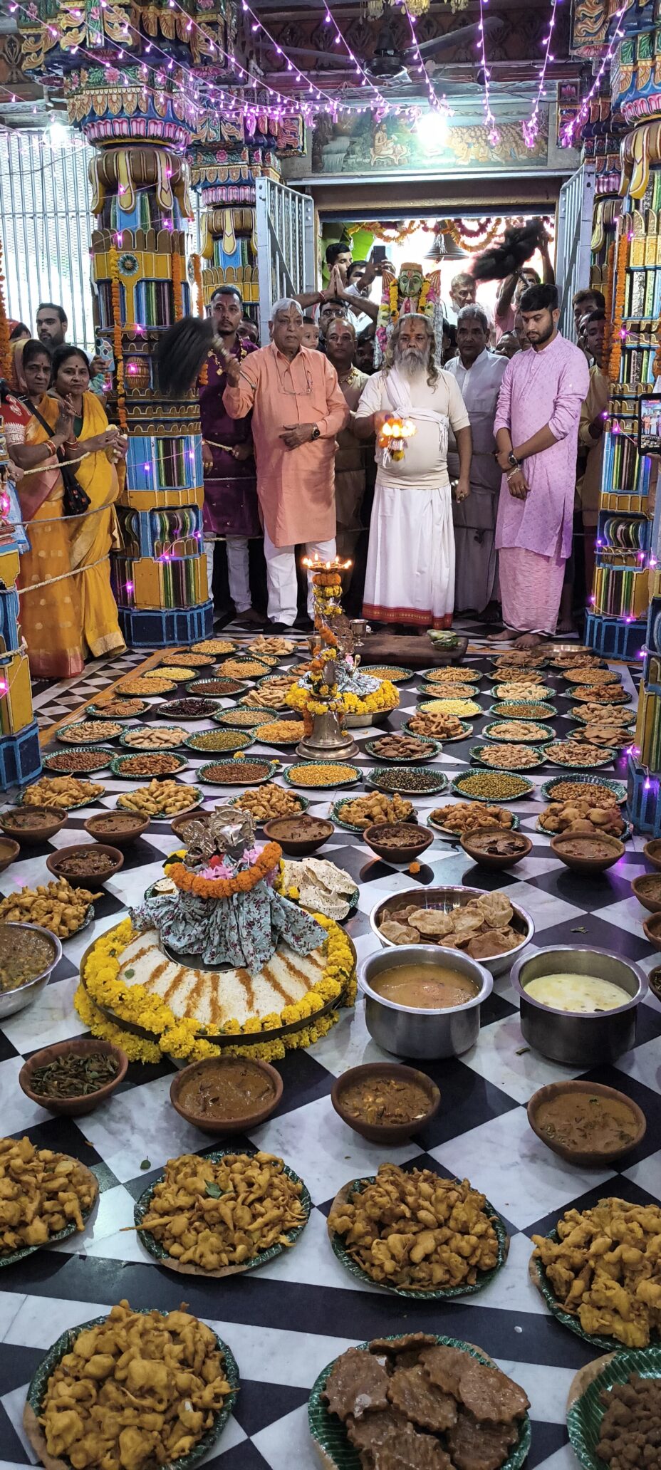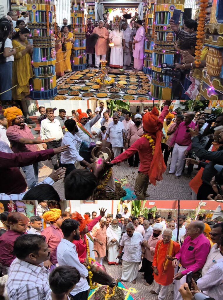 रायपुर(Raipur)22/10/2025: कार्तिक शुक्ल प्रतिपदा को प्रत्येक वर्ष की तरह गोवर्धन पूजा का महापर्व श्रद्धा भक्ति पूर्वक हर्षोल्लास के साथ मनाया गया। गौ माताओं की पूजा की गई तथा गोबर से गोवर्धन पर्वत बनाकर उसकी विधिवत पूजा अर्चना की गई। ठाकुर जी मे 56 भोग लगाया गया , छत्तीसगढ़ को धान का कटोरा कहा जाता है और धान को अन्नपुर्णा, इसलिए इस वर्ष मठ के गर्भगृह को धान कि बालियों से सजाया गया है छत्तीसगढ़ मे पहली बार इस तरह सजाया गया है।