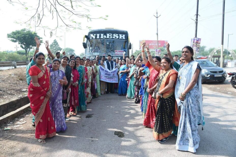 रायपुर(Raipur)10-11-25: आज धरसींवा में दिशा दर्शन योजना अंतर्गत स्व सहायता समूह की महिलाओं को जगन्नाथ पुरी तीर्थ यात्रा भ्रमण पर ले जा रही बस को विधायक अनुज शर्मा ने हरी झंडी दिखा कर रवाना किया। इस योजना कि पहली यात्रा में क्षेत्र की 50 महिलाये लाभान्वित हुए।इस अवसर पर विधायक अनुज शर्मा ने सभी महिलाओं को मंगलमय दर्शन कि शुभकामनाएं देते हुए कहा कि आज हम अपने स्व सहायता समूह की बहनों को तीर्थ यात्रा पर भेज रहे है, ताकि वे अपने आध्यात्मिक सपनों को पूरा कर सकें। हमारी सरकार ने यह योजना इसलिए शुरू की है, क्योंकि हम जानते हैं कि कई बहनों के लिए आर्थिक कठिनाइयां तीर्थयात्रा में बाधा बनती हैं।