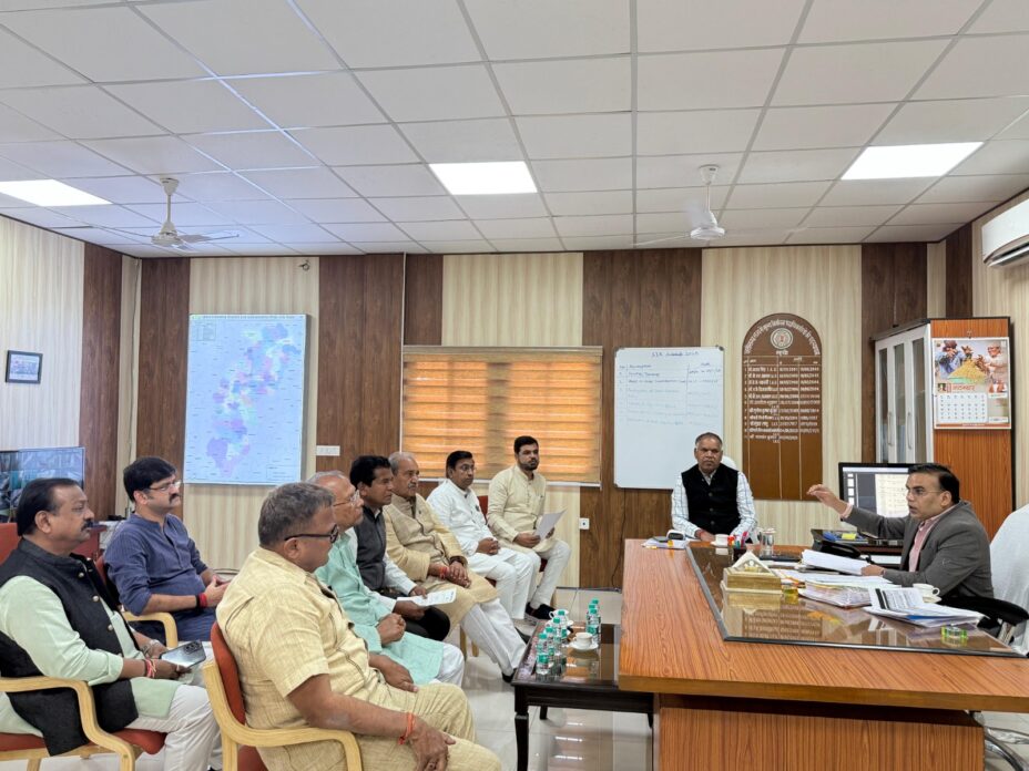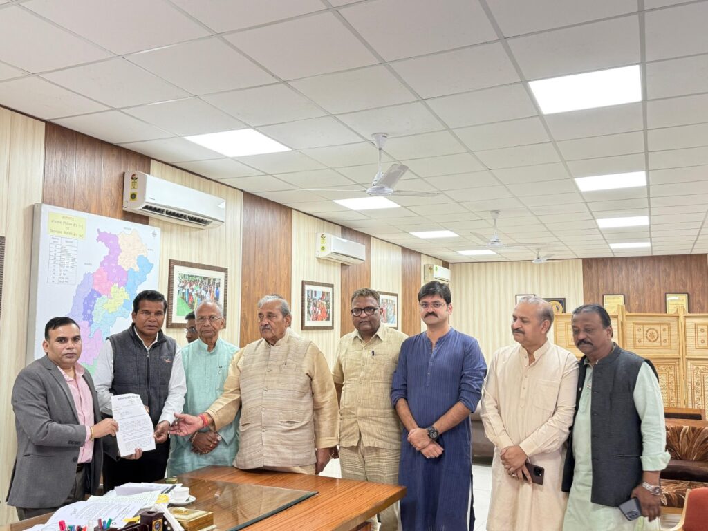 रायपुर(Raipur)13 नवंबर 2025: कांग्रेस के एक प्रतिनिधिमंडल ने प्रदेश निर्वाचन पदाधिकारी से मिलकर 6 बिन्दुओं का ज्ञापन सौंपा। एसआईआर की सीमा बढ़ाने एवं गहन पुनरीक्षण के काम की परेशानियों के निराकरण की मांग रखी। प्रतिनिधि मंडल में पूर्व मंत्री मोहन मरकाम, ताम्रध्वज साहू, पूर्व अध्यक्ष धनेंद्र साहू, विधायक राघवेन्द्र कुमार सिंह, शैलेश नितिन त्रिवेदी, सफी अहमद, महामंत्री सकलेन कामदार, कन्हैया अग्रवाल, मो. सिद्दिक उपस्थित थे।