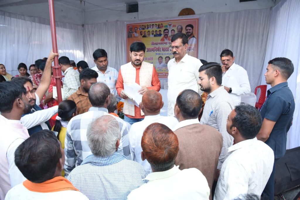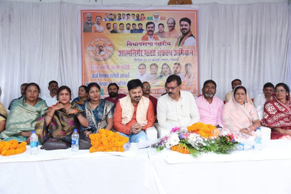 रायपुर(Raipur)आज धरसींवा विधानसभा के ग्राम मांढर में विधानसभा स्तरीय आत्मनिर्भर संकल्प भारत बैठक आयोजित किया गया जिसमें धरसींवा विधायक अनुज शर्मा व मोतीलाल साहू मुख्य वक्ता के रूप में सम्मिलित हुए और कार्यकर्ताओं और जनता के बीच नई ऊर्जा का संचार किया। इस अवसर पर विधायक अनुज शर्मा ने कहा कि आत्मनिर्भर भारत एक ऐसा विचार है जो भारत को आर्थिक, सामाजिक और तकनीकी रूप से स्वावलंबी बनाने का संकल्प है। आत्मनिर्भरता का अर्थ है कि एक राष्ट्र अपनी आवश्यकताओं को स्वयं पूरा करने में सक्षम हो और बाहरी सहायता पर निर्भर न रहते हुए अवश्यकतानुसार राष्ट्र के माँगो को पूरा कर सके।
