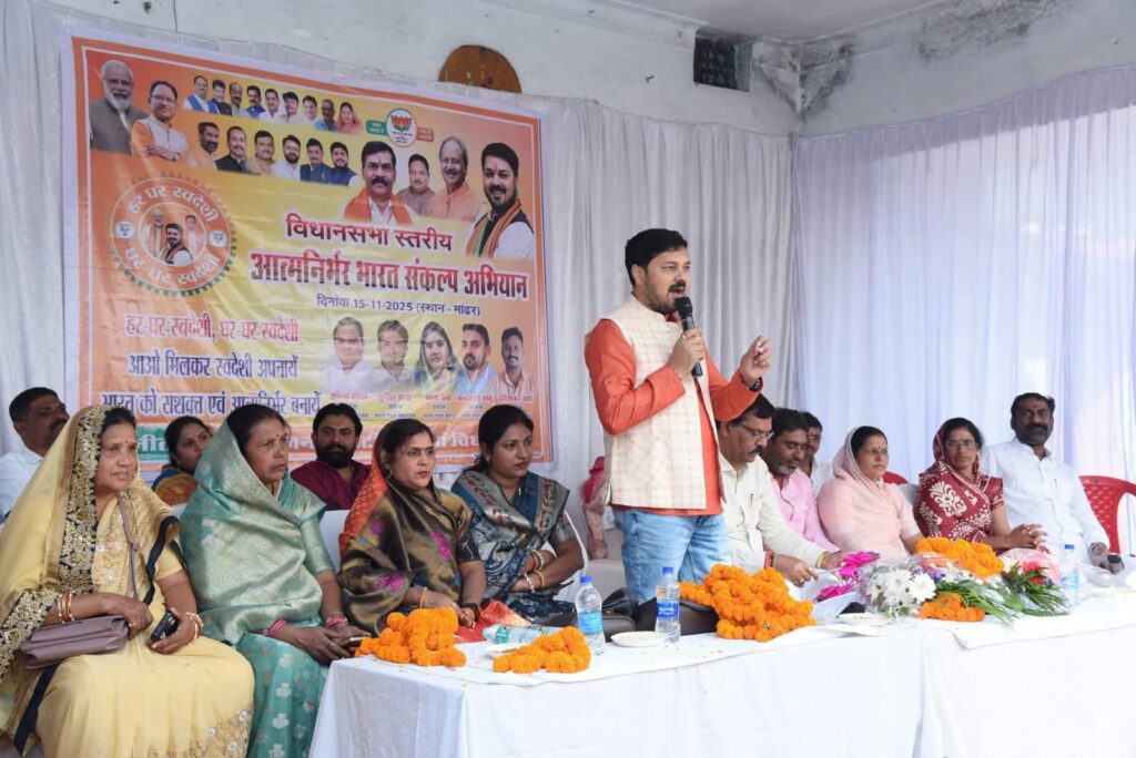 यह अभियान ‘लोकल फॉर वोकल’ को भी प्रोत्साहित करता है, जिसका तात्पर्य है कि हमें देश में बने उत्पादों को प्राथमिकता देते हुए उन्हें वैश्विक बाजार में अलग पहचान देना। प्रधानमंत्री मोदी ने स्पष्ट किया है कि भारत जब आत्मनिर्भरता की बात करता है, तो आत्मकेंद्रित व्यवस्था की वकालत नहीं करता, बल्कि दुनिया के साथ प्रतिस्पर्धा करते हुए उसकी मदद करना चाहता है। हमारे प्रधानमंत्री मोदी का संकल्प हैं की 2047 तक भारत को विकसित भारत बनाने का। इस संकल्प को जन-जन तक पहुंचाना हमारा लक्ष्य है| इस अवसर पर विधायक अनुज शर्मा , मोतीलाल साहू ,जिला एवं जनपद सदस्य, मंडल अध्यक्ष, युवा मोर्चा सहित सम्माननीय जन उपस्थित रहे।