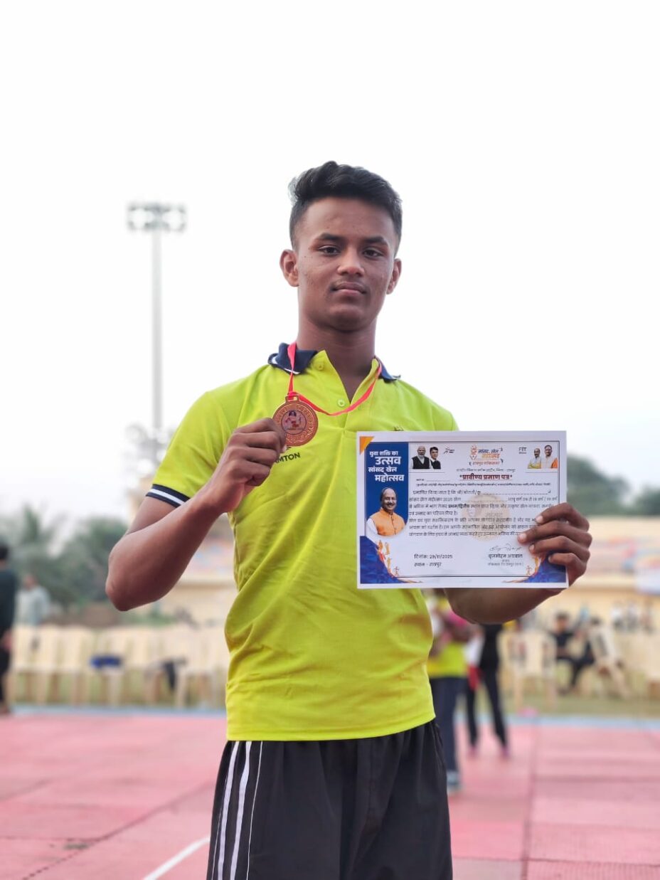 रायपुर(Raipur) रायपुर में आयोजित सांसद खेल महोत्सव के ब्लॉक स्तरीय दूसरे चरण की कुश्ती प्रतियोगिता में पंडित रविशंकर जोन के प्रतिभाशाली खिलाड़ी अखिल यदु ने अपने वर्ग में उत्कृष्ट प्रदर्शन करते हुए प्रथम स्थान प्राप्त किया। यह उपलब्धि 19 वर्ष से कम आयु वर्ग के 65 किलोग्राम भार वर्ग में हासिल की गई।