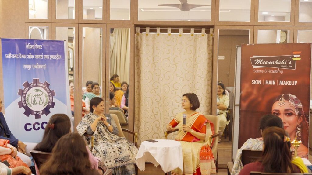 रायपुर(Raipur)17-12-25: फर्श से अर्श तक ऐसी महिला की कहानी ,जो आज एक मुकाम पर है ,और उसने अपने बलबूते पर एक छोटी सी शुरुआत करके ,महिला व्यापार को आगे किया ,समाज में उसका एक नेम और शोहरत हो यह सीरीज महिला चैम्बर हर महीने आयोजित करेगा । इसी श्रृंखला के तहत — महिला चैम्बर ने मीनाक्षी टुटेजा को आमंत्रित किया ।और इस चर्चा सभी सड़सोए ने भाग लिया ।