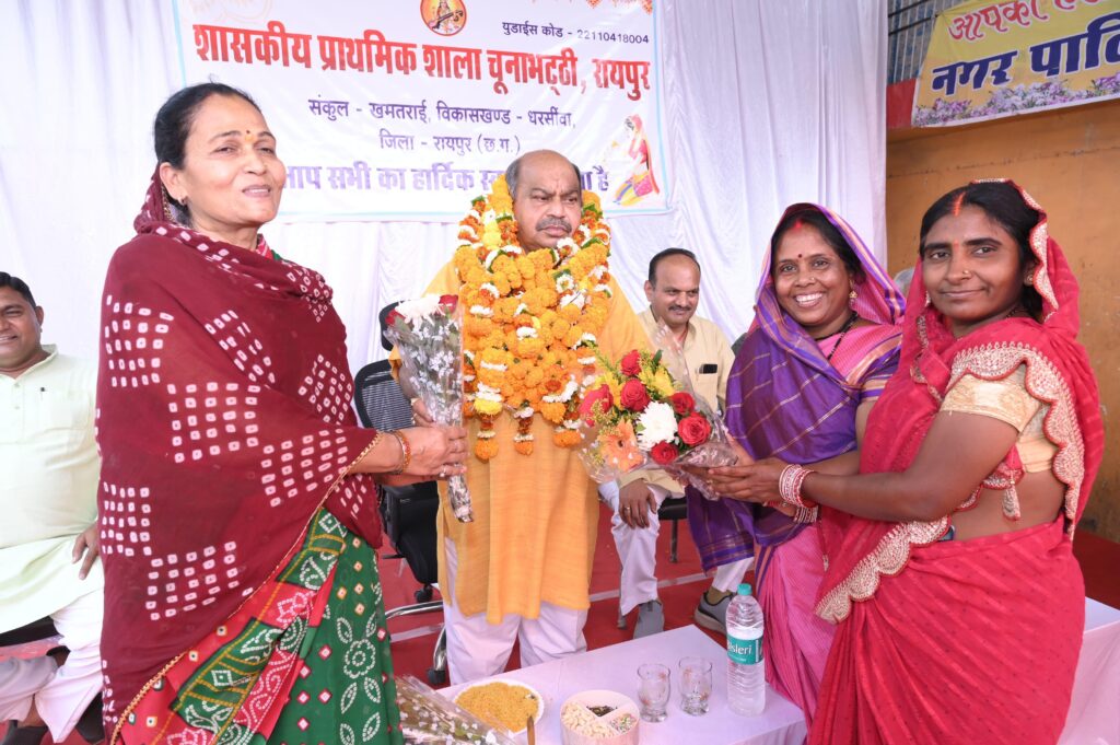 रायपुर(Raipur) 15 मार्च 2026: रायपुर – आज रायपुर के चुनाभट्टी स्थित शासकीय प्राथमिक शाला के जीर्णोद्धार एवं नवनिर्मित विद्यालय भवन के उद्घाटन समारोह का आयोजन अत्यंत गरिमामय वातावरण में संपन्न हुआ। उत्तर विधानसभा क्षेत्र के लोकप्रिय विधायक पुरंदर मिश्रा मुख्य अतिथि के रूप में कार्यक्रम में सम्मिलित हुए और नवीन स्वरूप में सुसज्जित विद्यालय का लोकार्पण कर विद्यार्थियों के उज्ज्वल भविष्य की कामना की। इस अवसर पर विधायक पुरंदर मिश्रा जी ने विद्यालय परिसर का अवलोकन किया तथा बच्चों, शिक्षकों और अभिभावकों से संवाद भी किया।