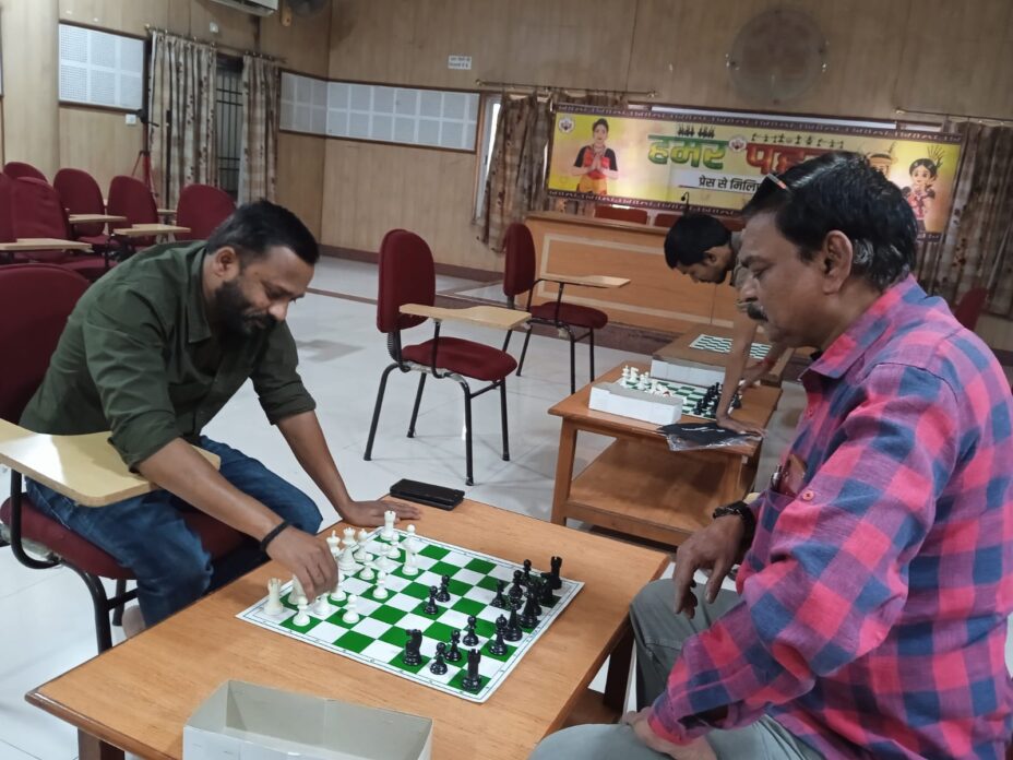 पहले मैच में कौशल तिवारी और बमलेश्वर सोनवानी ने मुकाबले की शुरुआत संयमित अंदाज में की। शुरुआती चालों में दोनों खिलाड़ियों ने अपनी-अपनी रणनीति के तहत मोहरों को सधे हुए ढंग से आगे बढ़ाया। खेल के बीच में कौशल तिवारी ने आक्रामक रुख अपनाने की कोशिश की, लेकिन बमलेश्वर सोनवानी ने धैर्य और सूझबूझ का परिचय देते हुए उनकी चालों का प्रभावी जवाब दिया। निर्णायक क्षण तब आया जब बमलेश्वर सोनवानी ने एक सटीक संयोजन के माध्यम से बढ़त बना ली।